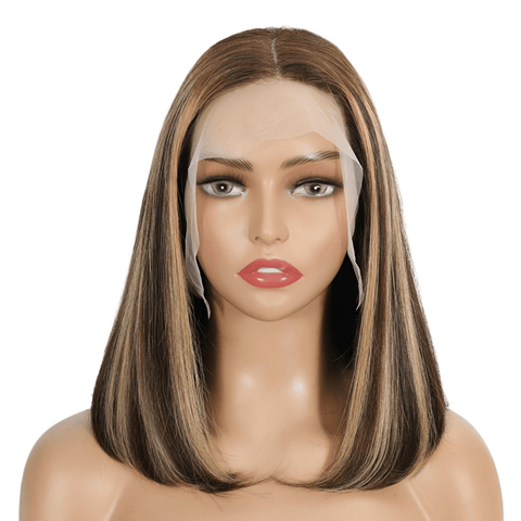 1.Highlight P4/27 Bob Wig Density:180% Density 13x4 Lace Frontal Wigs Human Hair,4 Inch Parting Space, Can Make Middle Part And Side Part Free