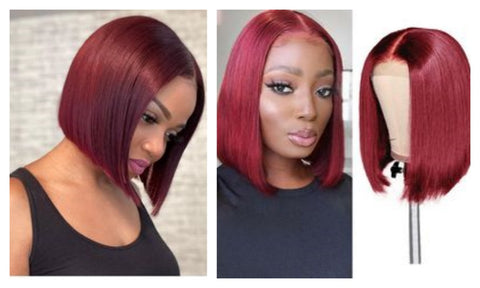 • 1.Burgundy bob lace wig human hair:100% Unprocessed brazilian virgin 10a human hair short bob lace front human hair wigs 13*4 straight hair lace wigs human hair.