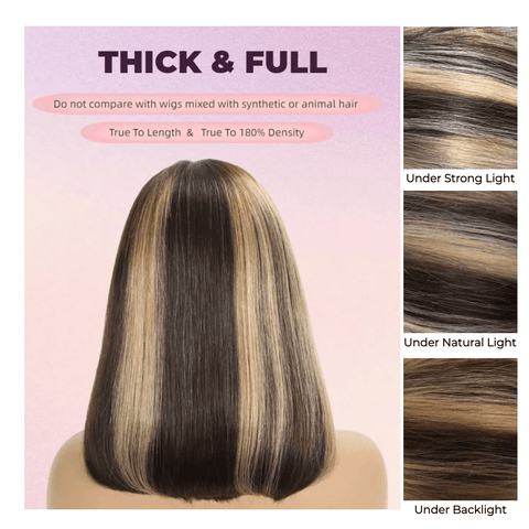 -Brown Bob Wig With Honey Blonde Highlights Lace Frontal Bob