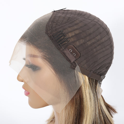 Highlight Bob Wig Human Hair 180% Density -13x4 lace front wig,22.5 inch medium cap, 2 adjustable straps and 4 combs for easy adjustment that helps you hold your head in place. comfortable to wear.