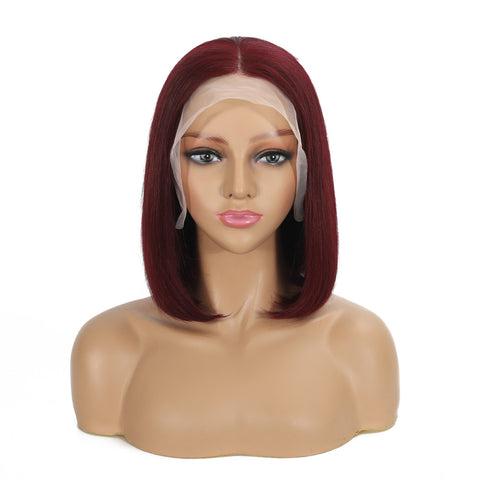 Burgundy Bob Wig Human Hair:average cap size (22inch - 22.5inch) and transparent lace color, with combs and adjustable straps make it fit most people and easier to wear.